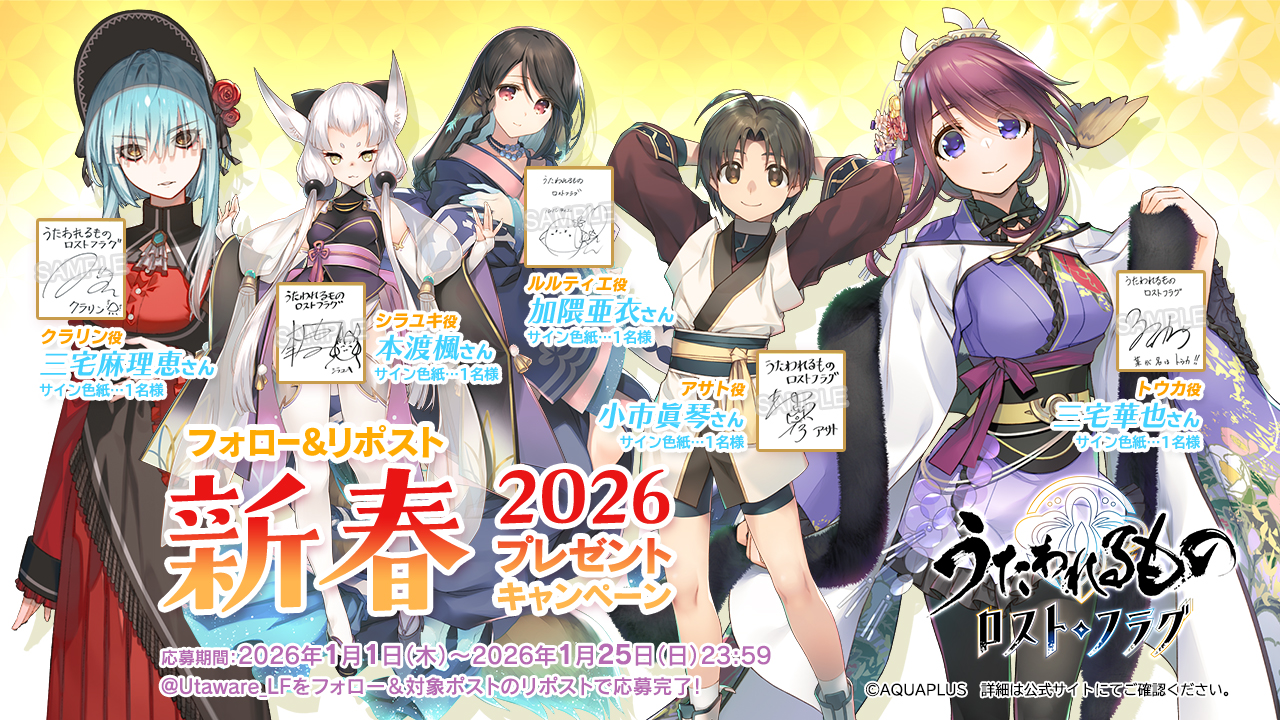 応募期間終了後、当選者の方には『うたわれるもの ロストフラグ』公式Xアカウントより